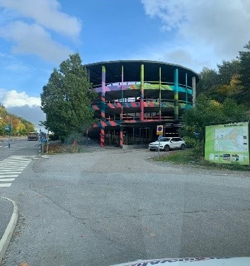 Observera att det finns ett parkeringshus i backen upp från Danvikshemsrondellen. Se bild.